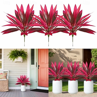 6 plantas tropicales artificiales de 17 hojas, imitación de bambú drácena, para decoración de interiores y exteriores, arreglos florales, muros vegetales, jardín, patio y detalles de vegetación.