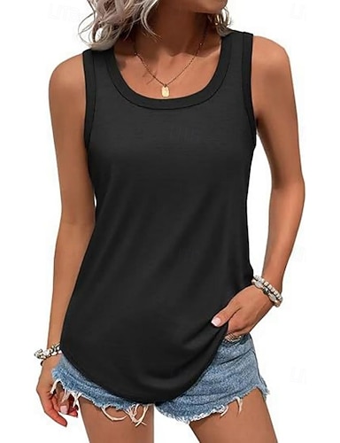 Mujer Camiseta sin mangas Camisa sin mangas Camiseta superior Color sólido Moda Elegante Clásico Sin Mangas Cuello Barco Tops regulares Diario Noche Fin de semana Azul Piscina Rosa albaricoque Negro