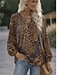 Mujer Camisa Camisa casual Tops de verano Graphic Leopardo Elegante Bohemia Vacaciones Manga Larga Escote en Pico Tops largos Diario Exterior Ropa de calle Leopardo Rosa Marrón Verano Primavera Otoño