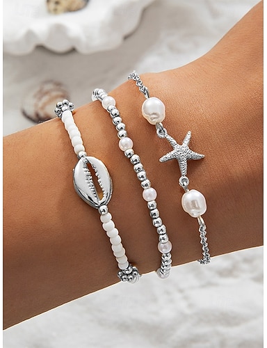 Conjunto de 3 pulseras elásticas de estilo bohemio para mujer, de aleación, en colores dorado y plateado, ajustables, perfectas para vacaciones en la playa y para uso diario informal.