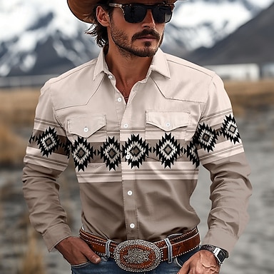 Hombre azteca Tribal Ética / Africana camisa occidental Camisa vaquera Manga Larga Vintage estilo occidental Tribal Exterior Vacaciones Carrera de caballos Primavera verano Cuello Vuelto Estampado