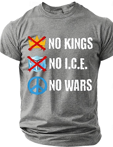 Camiseta de hombre sin reyes, sin hielo, sin guerras, símbolo de paz, corona de hielo, declaración de protesta política, antiestablishment, ropa urbana, manga corta, gráfica, informal, uso diario,