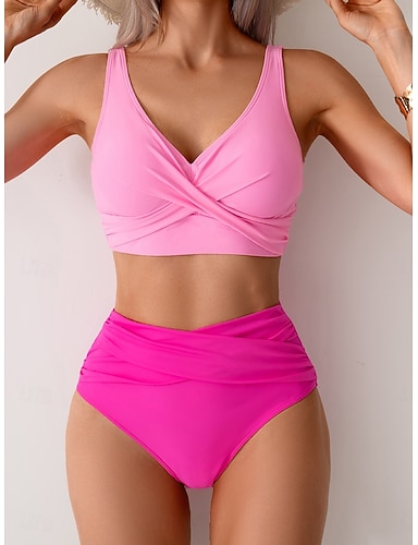 Mujer Conjuntos de bikini Traje de baño Bañadores Color sólido Bañadores Rosa Claro Rosa Transpirable Sin Mangas - Surf Playa Natación Verano