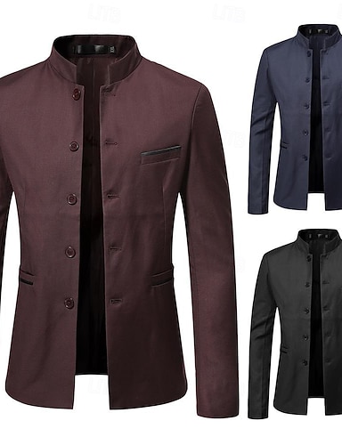 Hombre Chaqueta americana Formal Vintage Tejido Oriental Primavera Todas las Temporadas POLY Color sólido Clásico Casual / Diario Botonadura Simple Chaqueta de sport Negro Burdeos Azul Oscuro
