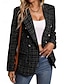 Mujer chaqueta Formal Bolsillo Plaid Resistente al Viento Ropa de calle Ajuste regular Ropa de calle Manga Larga Otoño Negro S