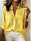 Mujer Blusa Graphic A Rayas Diario Elegante Básico Manga Larga Cuello Camisero Tops largos Diario Azul Piscina Negro Amarillo Rosa Verano Primavera