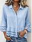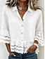 Mujer Blusa Botones Ribete de encaje Color sólido Elegante Vacaciones Casual Manga 3/4 Cuello Camisero Tops regulares Diario Azul Piscina Blanco Verano Primavera Otoño