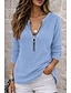 Mujer Camisa de manga corta Camisa casual Blusa Botones Color sólido Vacaciones Vintage Elegante Manga Larga Cuello Barco Tops regulares Diario Exterior Festivos Azul Piscina Primavera Otoño Invierno
