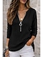 Mujer Camisa casual Blusa Retazos Cremallera Color sólido Elegante Básico Casual Manga Larga Cuello Vuelto Tops regulares Diario Exterior Ropa de calle Blanco Primavera Otoño Invierno
