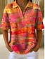 Camisa de señora de manga corta Gráfico geométrico de rayas Vintage Tropical Elegante Sin mangas Cuello Tops largos diarios Azul Negro Rosa Naranja Verde Verano Primavera