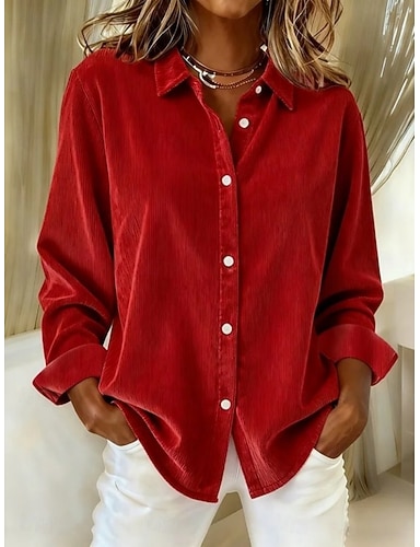 Mujer Blusa Bolsillo Color sólido Casual Manga Larga Cuello Camisero Vacaciones Noche Blanco Vino Naranja Verde Trébol Otoño Invierno
