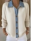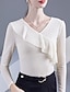 Mujer Camisa Blusa Color sólido Básico Casual Manga Larga Escote en Pico Tops regulares Diario Encaje Retazos Blanco Otoño Invierno
