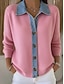 Mujer Blusa Geométrico Bloque de color Tropical Elegante Casual Manga Larga Cuello Barco Tops regulares Diario Retazos Botones Rosa Azul cielo Gris Primavera Otoño Invierno