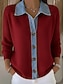 Navidad Mujer Blusa Color sólido Elegante Casual Manga Larga Escote en Pico Tops regulares Diario Retazos Negro Rojo Primavera Otoño Invierno