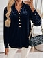Mujer Blusa Color sólido Elegante Casual Manga Larga Cuello Barco Tops regulares Diario Botones Negro Verde Ejército Rojo Azul Piscina Gris Primavera Otoño Invierno