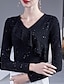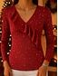 Navidad Mujer Blusa Color sólido Elegante Básico Casual Manga Larga Escote en Pico Tops regulares Diario Lentejuelas Plata Negro Rojo Verde Trébol Primavera Otoño Invierno