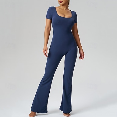 Mujer Monos de entrenamiento de una pieza Mono de yoga Color sólido Body Primavera Otoño Negro Azul Oscuro De Deporte Deportes Pilates Alta cintura Control de barriga Manga Corta Deporte Ropa de