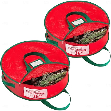 Bolsa de almacenamiento para coronas navideñas, paquete de 2, duradera, lona, cierre de cremallera, asa resistente, protección contra el polvo y las plagas, ideal para organizar el hogar y el garaje