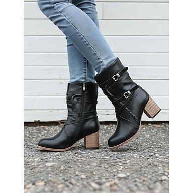 Mujer Botas Botas holgadas Tallas Grandes Botines Botines Exterior Diario Botines Botines Con Cordón Tacón alto Tacón Cuadrado Dedo redondo Vintage Casual Estilo industrial Cuero PU PU Cremallera