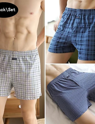 Hombre 3 paquetes Boxer Calzoncillos boxer americanos Estampado Mezcla de Algodón Lavable Cómodo Ajedrez Tiro Bajo Azul+Azul Oscuro+Gris Claro