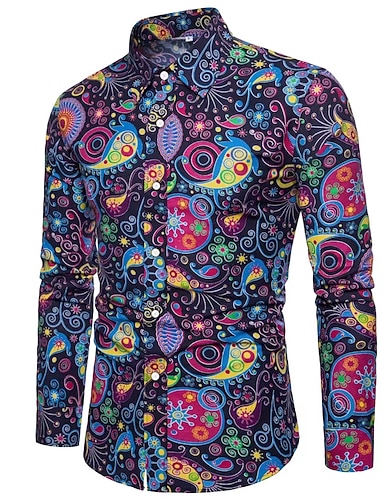 Retro Antiguo Años 70 Camisas Camisa hawaiana Hippie Cachemir Disfraz Hombre Mascarada Fiesta Ropa Cotidiana Desfile del orgullo Adulto Camisas