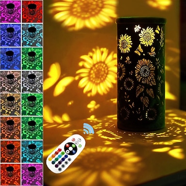 Lámpara de proyección de sombra hueca de hierro y metal con diseño de girasol retro, fuente de alimentación USB, para interiores, salas de estar, comedores, cabeceras de cama, decoración de ambientes,