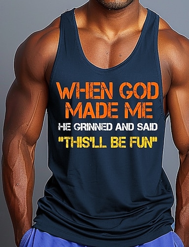 Hombre Camiseta sin mangas Top Camisetas Interiores Camisa sin mangas Sin Mangas Cuello Barco Verano Letras Moda Design Básico Clásico Vacaciones Calle Noche Negro Amarillo Rojo Camiseta superior