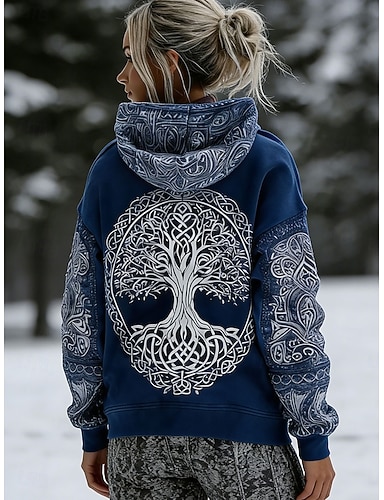 Mujer Sudadera con capucha Pullover Estampado Graphic Geométrico Tribal Casual Manga Larga Con Capucha Tops regulares Casual Ropa de fiesta de noche Calle Azul Piscina Rosa Primavera Otoño Invierno