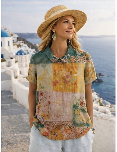 Mujer Blusa Botones Estampado Floral Graphic Vacaciones Diario Casual Manga Corta Cuello Camisero Tops regulares Diario Festivos Noche Verde Trébol Verano Primavera