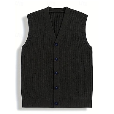 Hombre Chaleco suéter Vestido Suéter Chaleco Prendas de punto Chaleco tipo cárdigan Estriado Tejer Tops regulares Botones Plano Escote en Pico Moda Clásico Vacaciones Ropa Cotidiana Ropa Otoño