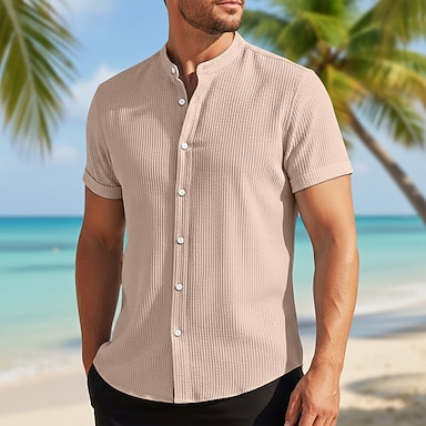 Hombre Camisa Camisa de cuello chino Camisa de cuello mandarín Camisa de verano Camisa casual Camisa de playa Negro Blanco Azul Piscina Color Caquí Manga Corta Plano Collar mandarín Vacaciones