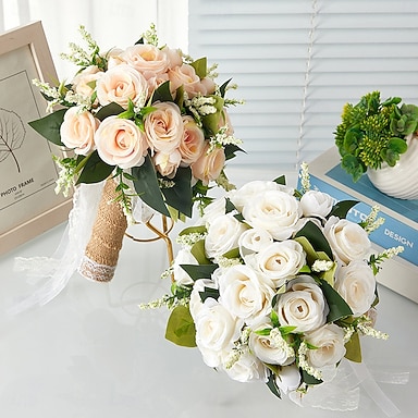 Ramo de novia, arreglo floral artificial para dama de honor, centro de mesa floral rústico para propuesta, fiesta, aniversario, decoración de mesa & ceremonia