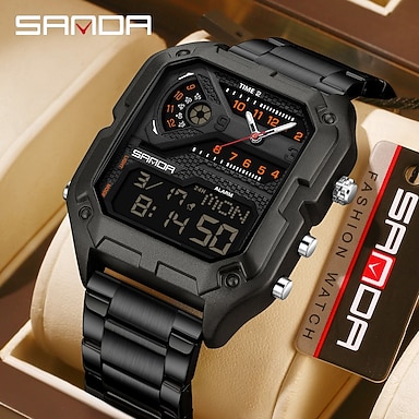 Relojes Electrónicos de Moda Marca SANDA Regalo para hombres al aire libre Reloj Analógico Digital para Hombre Luminiscente Impermeable Reloj con Luz de Fondo