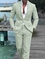 De los hombres Trajes de Lino boda en la playa Casual verde claro Negro Primavera verano Traje Solapa de Muesca Moda Ligeras Color sólido A Medida Juego de 2 piezas Recto 2 botones