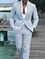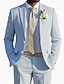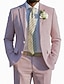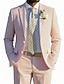De los hombres Trajes de Lino boda en la playa Casual Rosa Azul cielo Primavera verano Traje Solapa de Pico Moda Diario Color sólido A Medida Juego de 2 piezas Recto 2 botones
