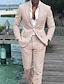 De los hombres Trajes de Lino boda en la playa Casual Amarillo Rojo Primavera verano Traje Solapa de Pico Moda Diario Color sólido A Medida Juego de 2 piezas Recto 2 botones