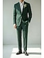 De los hombres Smoking Trajes de Lino boda en la playa Boda de primavera Azul Piscina Verde Trébol Primavera verano Traje Solapa de Pico Moda Fiesta Color sólido A Medida Juego de 2 piezas Recto 2