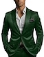 De los hombres Trajes Casual Fiesta Negro Verde Trébol Primavera verano Traje Solapa de Pico Moda Casual Color sólido Tallas Grandes Juego de 2 piezas Cruzado 2 botones