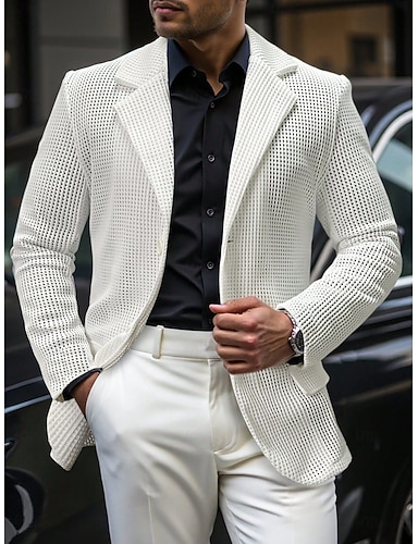 Hombre Chaqueta americana Cuello de muesca Feo Moda Ligeras Color sólido Blazer Blanco Ajustado Dos botones de un solo pecho