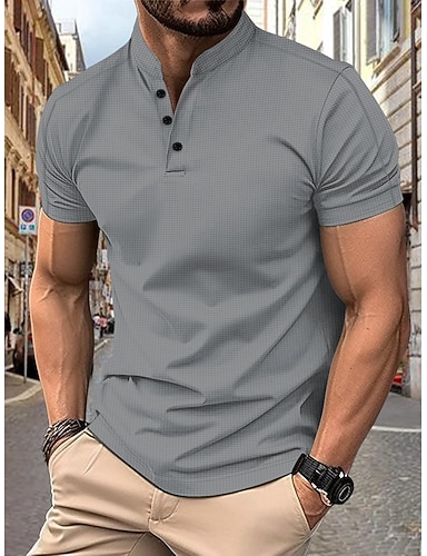 Hombre Camisetas polo Camisas de golf sin cuello Casual Escote Chino Manga Corta Básico Cómodo Plano Botones Verano Primavera Ajuste regular Negro Blanco Azul Marino Gris Camisetas polo