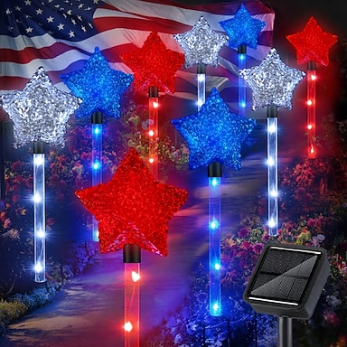 Lámpara solar patriótica para exteriores, roja y blanca. &Luces de estaca de estrella azul, luces LED impermeables para el suelo para el 4 de julio, Día de la Independencia 250, Día de los Caídos,