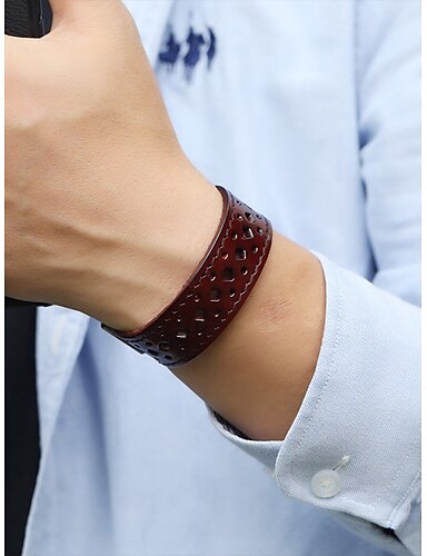 Pulsera hueca de cuero genuino bohemio para hombre: brazalete ajustable vintage para uso casual, de negocios y festivo.