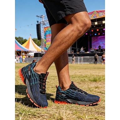 Zapatillas deportivas casuales negras y naranjas para hombre, con cordones, ligeras y cómodas para caminar, ideales para festivales de música, conciertos, estilo urbano, fiestas al aire libre y moda actual.
