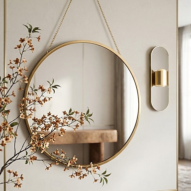 Espejo decorativo redondo de pared, marco de resina, arte de pared para el hogar, tocador &Decoración de baño, expositor de mesa o pared, accesorio de fotografía & regalo