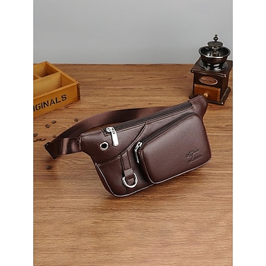 Riñonera de piel sintética para hombre, negra y marrón, con múltiples compartimentos, estilo bandolera, ideal para uso casual, viajes, vacaciones y actividades al aire libre.