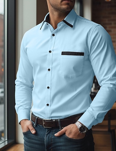 Hombre Camisa casual Camisas de trabajo Color sólido/liso Boda Negocio Rosa Claro Bleu Ciel Negro Blanco Manga Corta Cuello Inglés Primavera verano Ropa