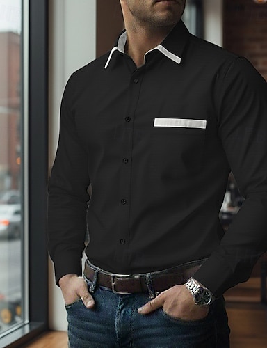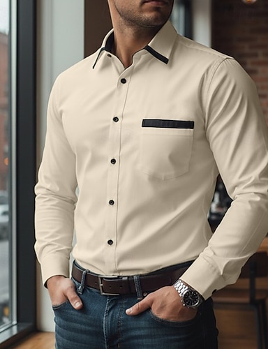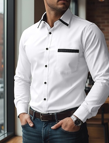 Hombre Camisa Camisa para Vestido Abotonar la camisa Bloque de color Diario Negocio Negro Blanco Manga Corta Cuello Vuelto Verano Ropa Retazos