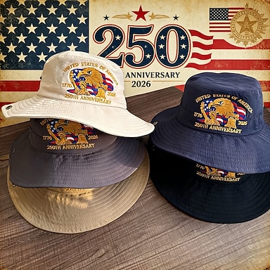 Sombrero de pescador bordado del 250 aniversario de EE. UU., sombrero tipo cubo americano del 250 aniversario, 1776-2026, sombreros de sol patrióticos plegables para hombre y mujer, transpirables y versátiles para todas las estaciones.