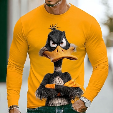 Camiseta de hombre con estampado de pato negro gruñón en chaqueta, gráfico 3D, estilo urbano, corte ajustado, ropa casual para exteriores, de diseñador, tallas S, M, L, XL, XXL y XXXL