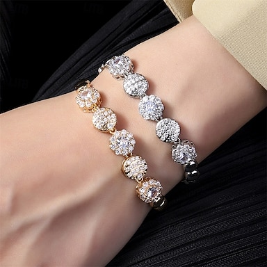 Zirconia Cúbica Clásico Forma de flor Moda Personalizado Sencillo Lujo Cromo Pulsera pulsera Plata / Dorado Para Boda Fiesta Pedida Fiesta de baile